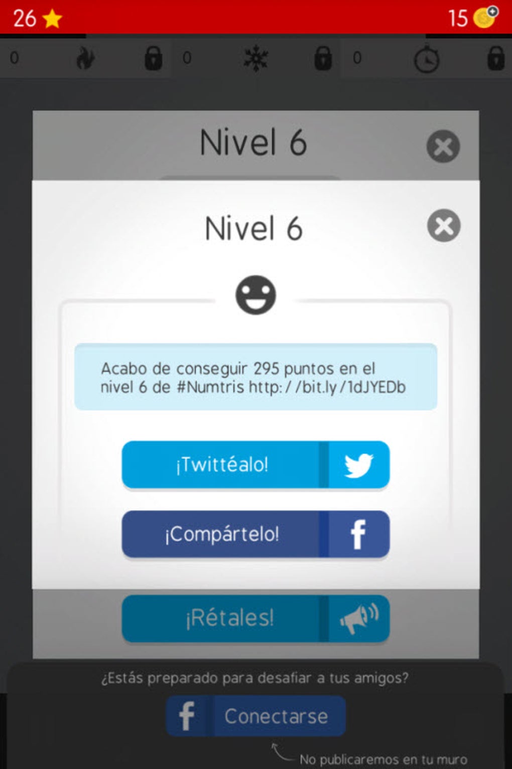 Por otro lado, puedes retar a tus amigos compartiendo tus resultados a través de Facebook y Twitter.